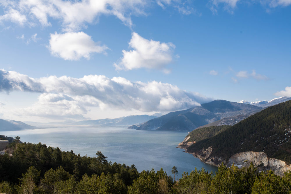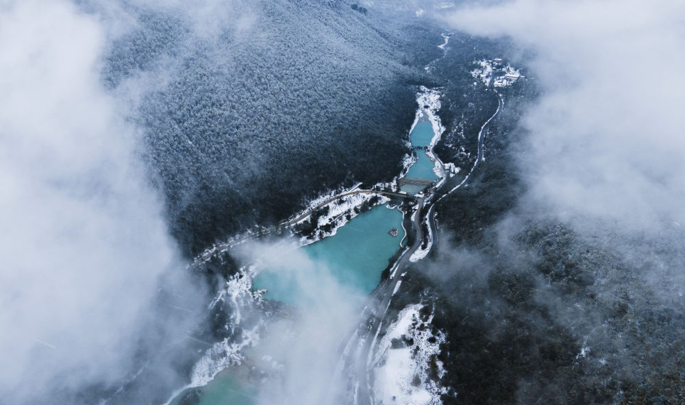 冬日的蓝月谷云雾弥漫,白雪点缀,别样美丽。