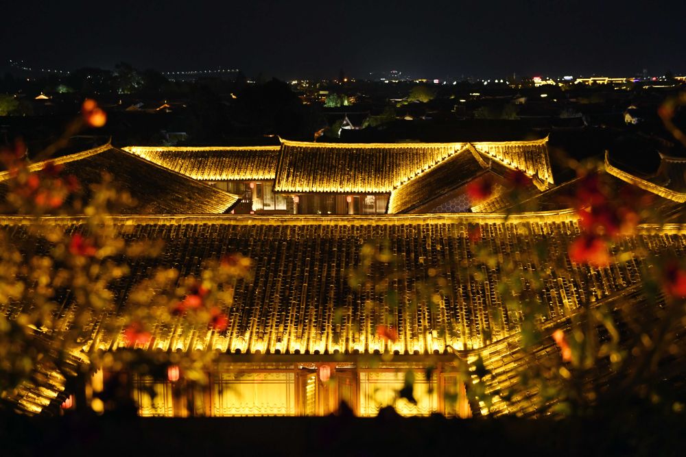夜色中的丽江古城,灯光璀璨,油纸伞古街散发迷人魅力。