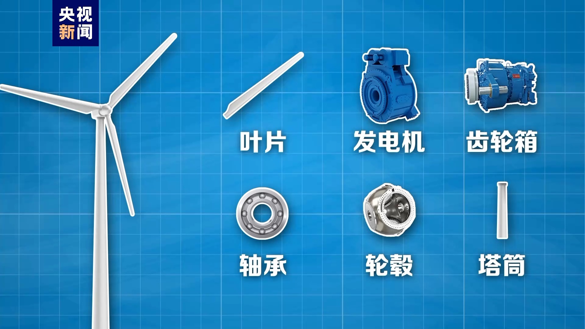 比如风机零部件制造,这是风电产业链的核心。拆开一台风机,有叶片、发电机、齿轮箱、轴承、轮毂、塔筒等,再细拆能拆出大约上万个零部件。