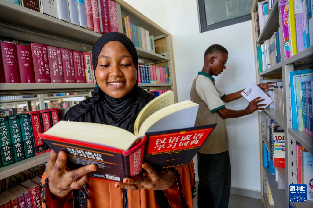 在坦桑尼亚达累斯萨拉姆大学,孔子学院图书馆常常座无虚席,就连书架前都挤满了学生,这座图书馆被称为“丝路书屋”。