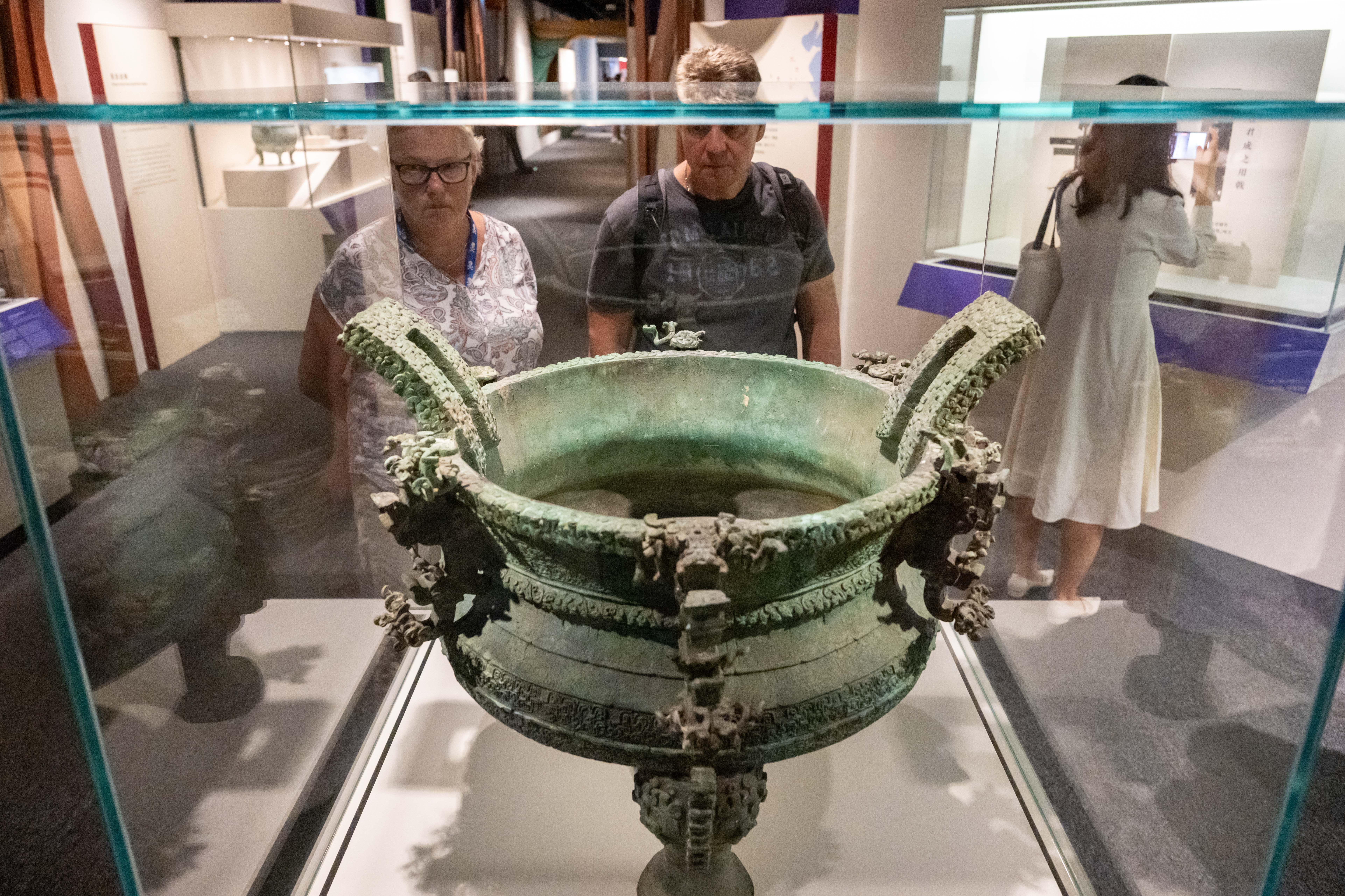 4月24日,观众在香港历史博物馆参观“天地之中——河南夏商周三代文明展”。新华社记者 朱炜 摄