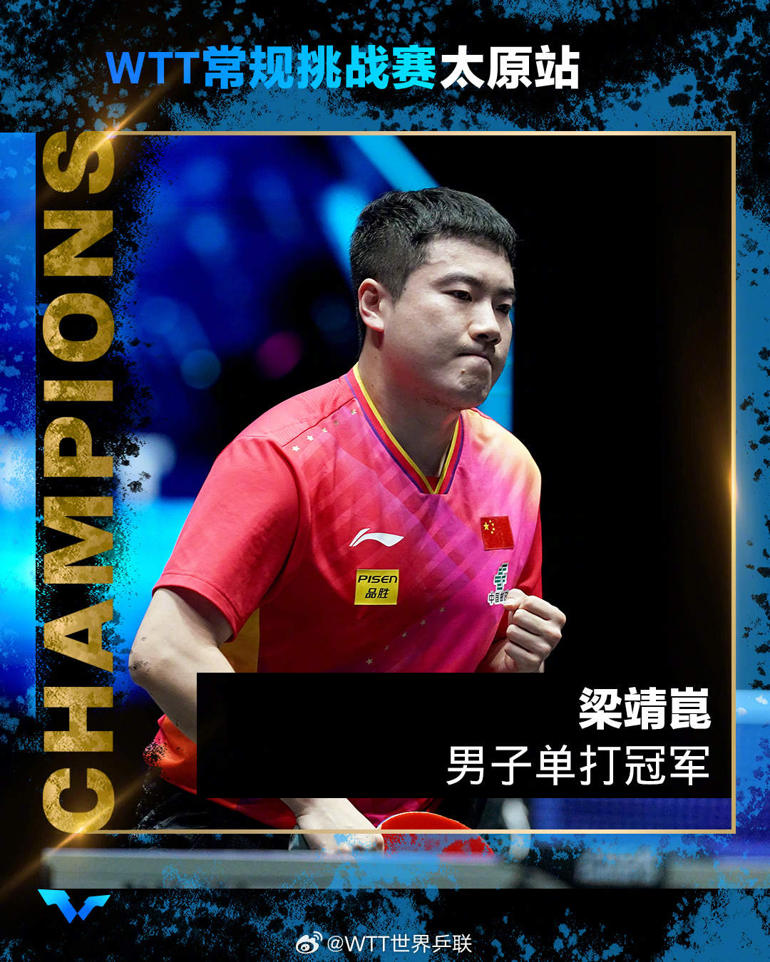 手机访问 —分享— 在26日晚进行的世界乒乓球职业大联盟(WTT)常规挑战赛太原站男单决赛中,中国选手梁靖崑战胜法国选手艾利克斯·勒布伦,夺得冠军。祝贺! http://www.bx417613.com 免责声明:本内容来自网络,不代表白溪网新闻或白溪网的观点和立场。