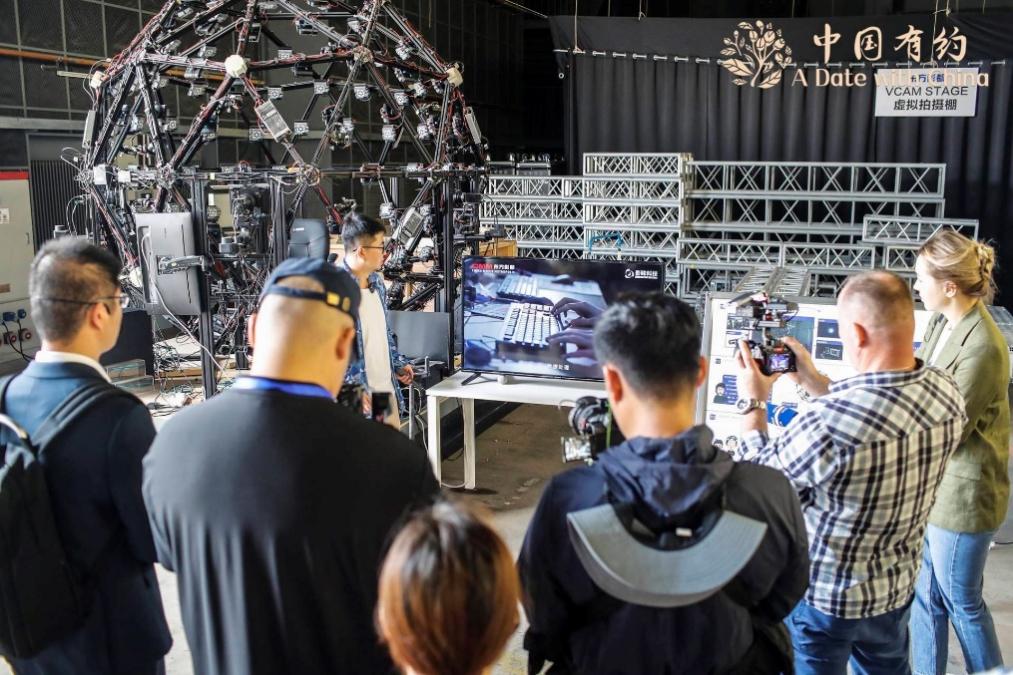 技术人员正在为媒体人介绍 “穹顶光场”的运作原理。