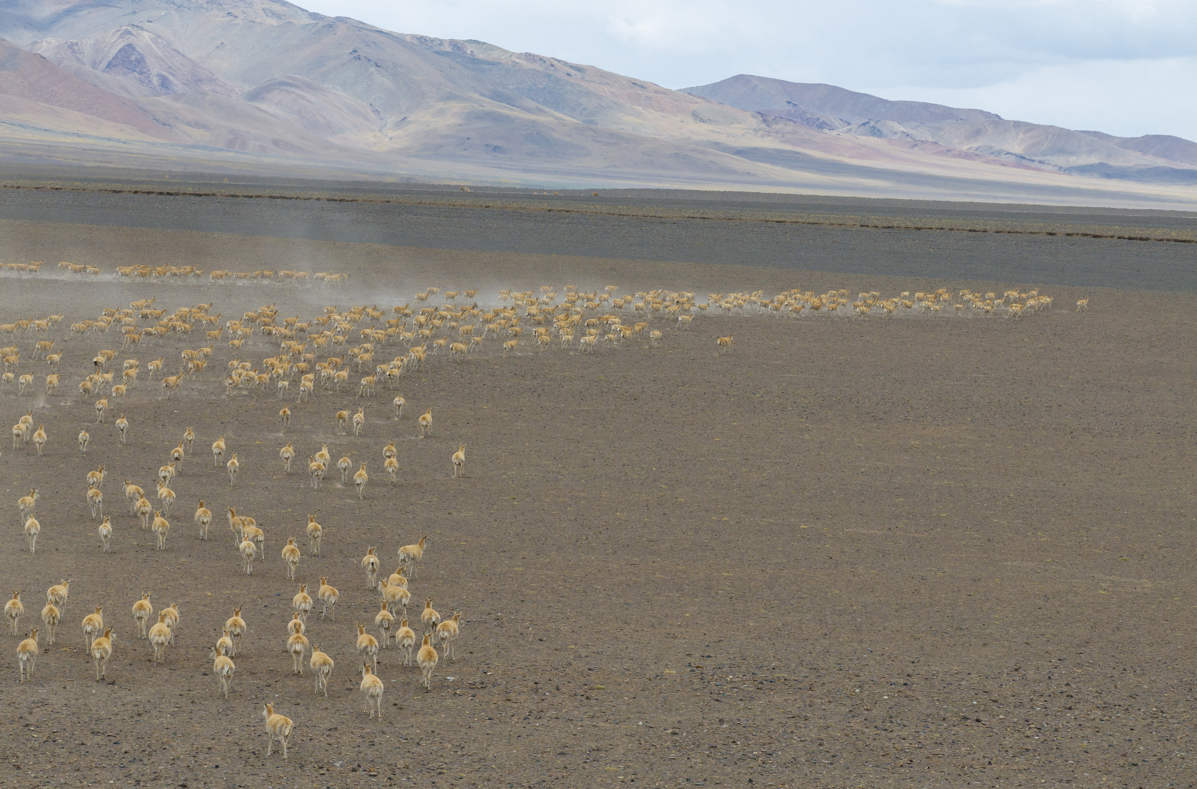 藏北羌塘草原的雌性藏羚羊进入迁徙繁殖季